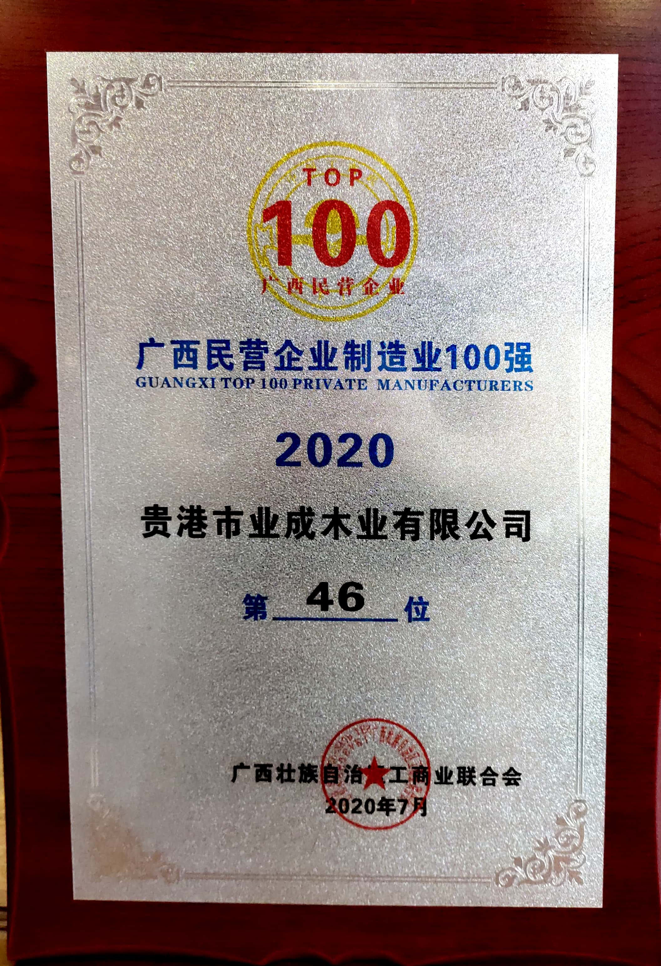 当前位置:网站首页 >荣誉资质 > 2020广西民营企业制造业100强